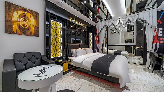 '명품' 테마 인테리어 - 개인의 취향에 따라 다소 과하게 느껴질 수 있는 독특한 디자인 요소가 존재함.
