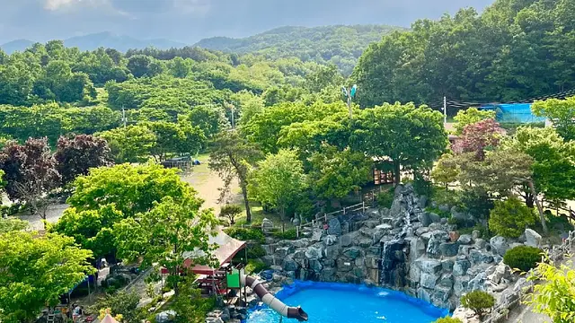 여름 시즌 특화 물놀이 시설 - 실외 수영장과 워터슬라이드를 갖춰 더운 날 시원한 시간을 보낼 수 있음