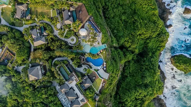 절벽 지형을 활용한 조망 - 울루와투 해안 끝자락에 위치해 객실과 수영장에서 인도양을 막힘없이 조망함