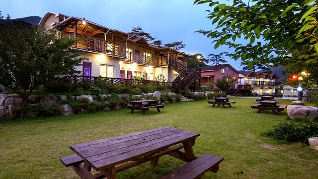 객실 내 무료 Wi-Fi와 노래방, 바비큐 시설을 이용할 수 있음. 내부에 편의점과 지정된 흡연 구역이 마련되어 있어 편리함. 다만 반려동물 동반 투숙은 허용되지 않음.