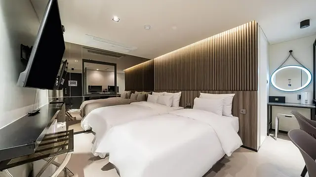 시설 일부 노후화 - 객실 설비에서 연식이 느껴지거나 화장실 팬 소음 등 불편이 발생할 수 있음.