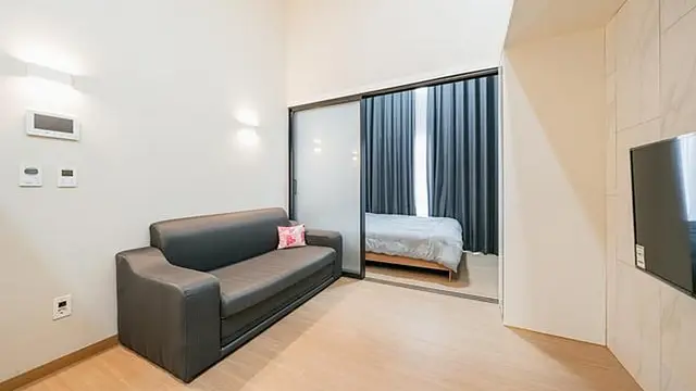 넓은 객실 - 1.5룸 수준에 높은 천장으로 체감 면적이 큼