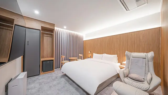 + 깔끔한 리모델링 시설 • 넓은 객실과 스타일러 • 무료 카페테리아 제공