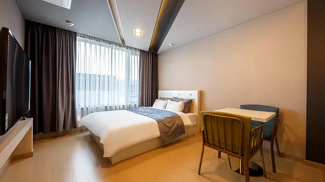- • 객실 내 싱크대, 스토브 등 장기 출장 편의 시설