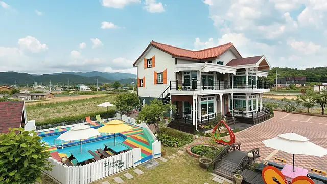 좋음- • 장점: 넓은 객실, 풀빌라 같은 수영장, 친절한 사장님.
