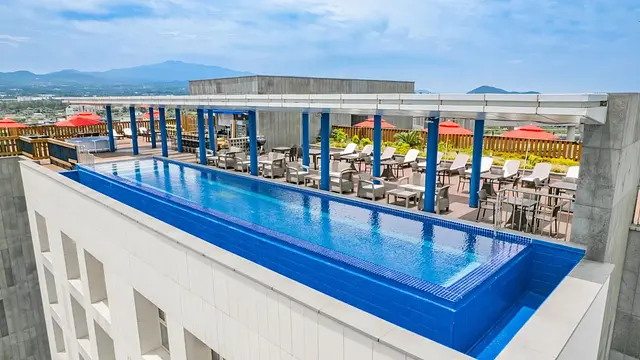 - • 넓은 객실 크기와 루프탑 수영장의 뛰어난 풍경