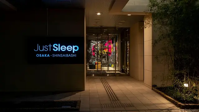 저스트 슬립 오사카 신사이바시의 체크인/체크아웃 시간은 어떻게 되나요?