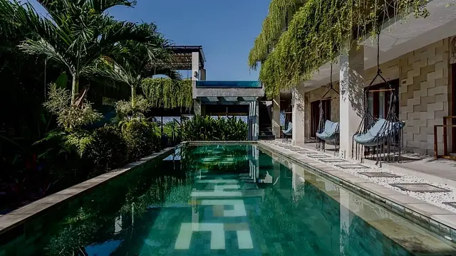 아름다운 수영장 - 논밭을 배경으로 한 수영장과 해먹 시설이 인상적이며 휴식을 취하기 좋음