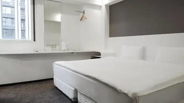 좁은 객실 크기 - 짧은 숙박에는 괜찮으나, 장기 투숙 시 짐 보관 및 이동에 불편함이 있을 수 있음.