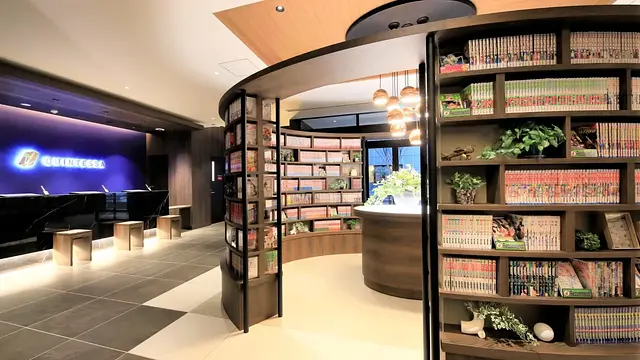 퀸테사 호텔 후쿠오카 텐진 코믹 앤 북의 체크인/체크아웃 시간은 어떻게 되나요?