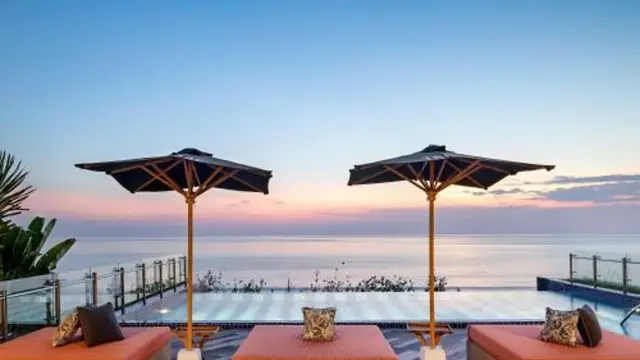 루프탑 인피니티 풀 - 6층에서 쿠타 해변의 일몰을 정면으로 감상하며 수영과 바 이용이 가능함