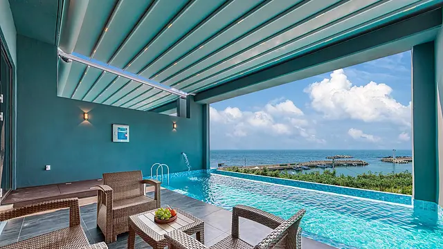 - • 탁 트인 오션 뷰 자랑하는 풀장 전망