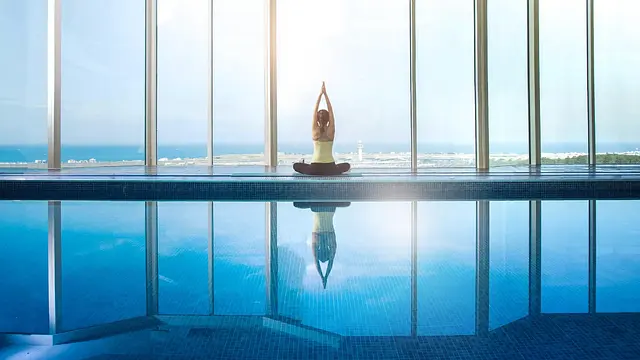 수영 시설 이용 희망하는 여행객 - 넓고 좋은 수영장