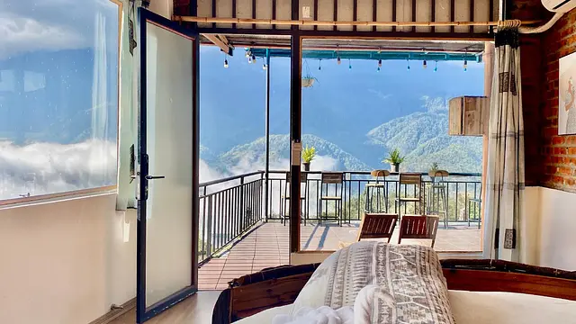파노라마 산 전망 - 3만 원대 저렴한 비용으로 사파의 탁 트인 산세를 객실 발코니에서 감상할 수 있음
