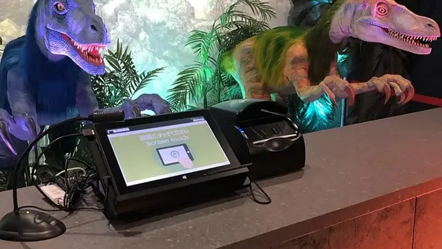 독특한 체크인 경험 - 로봇 공룡 직원이 인상적임